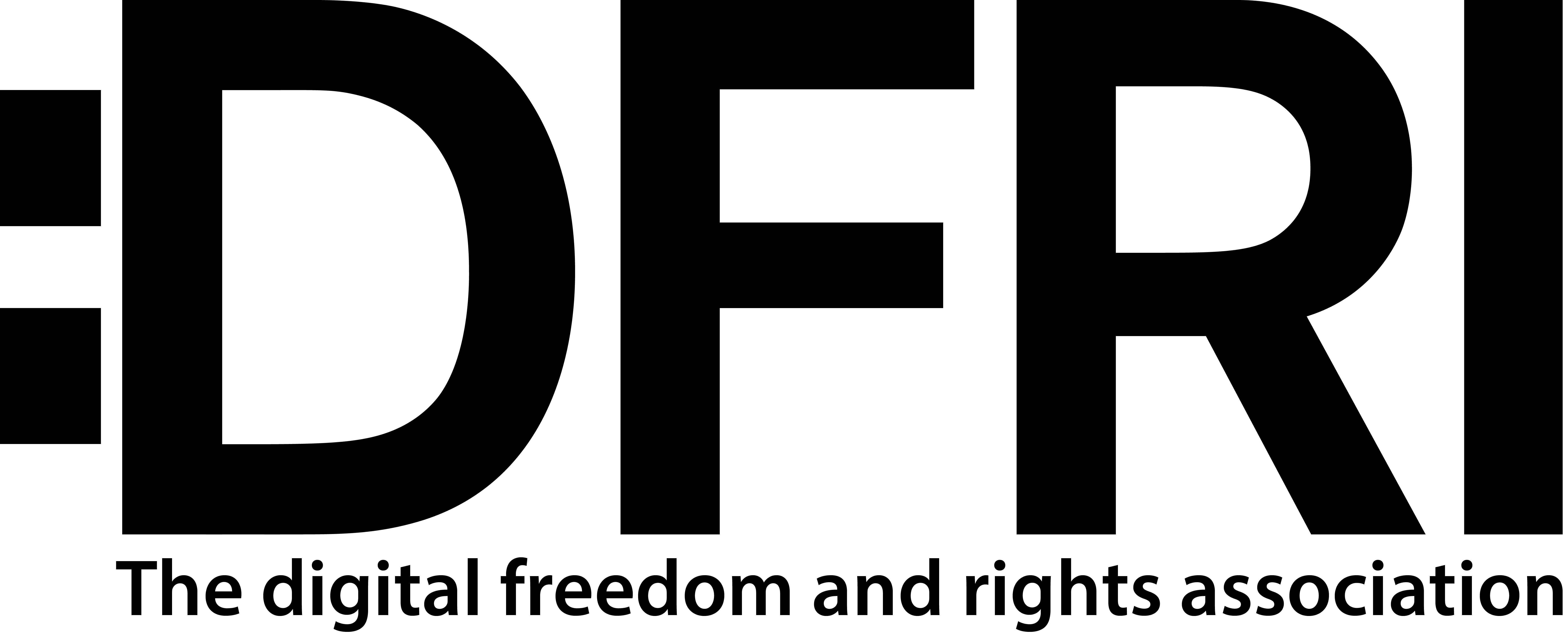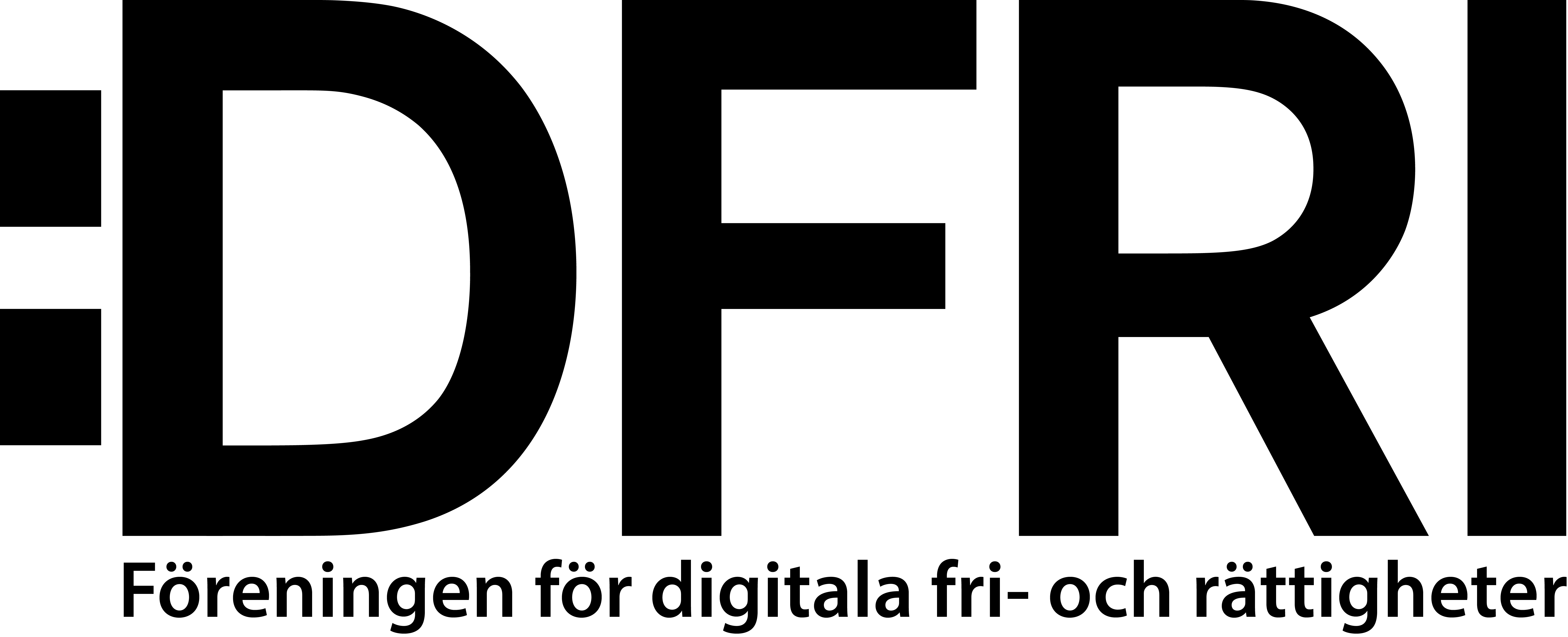 Användningen av DFRI:s logotyp är reglerad av dess licens, Creative Commons Attribution 4.0 International (CC BY 4.0). Du behöver inte fråga om ytterligare lov för att använda logotypen, men vi uppskattar en länk till https://dfri.se/ från din artikel eller hemsida.